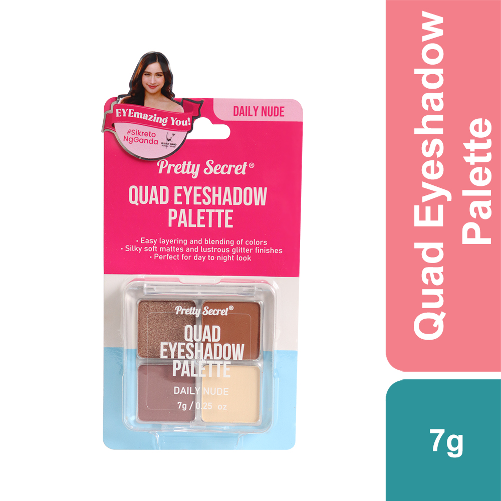 Look glamorous on the go with Pretty Secret Quad Eyeshadow Palette. Made with three silky-soft mattes and one lustrous glitter eyeshadow that feels lightweight and blends smoothly into the skin for a long-lasting makeup. It has an awesome color payoff that blend naturally with any skin tone or eye shape to help you perfect your day to night look.